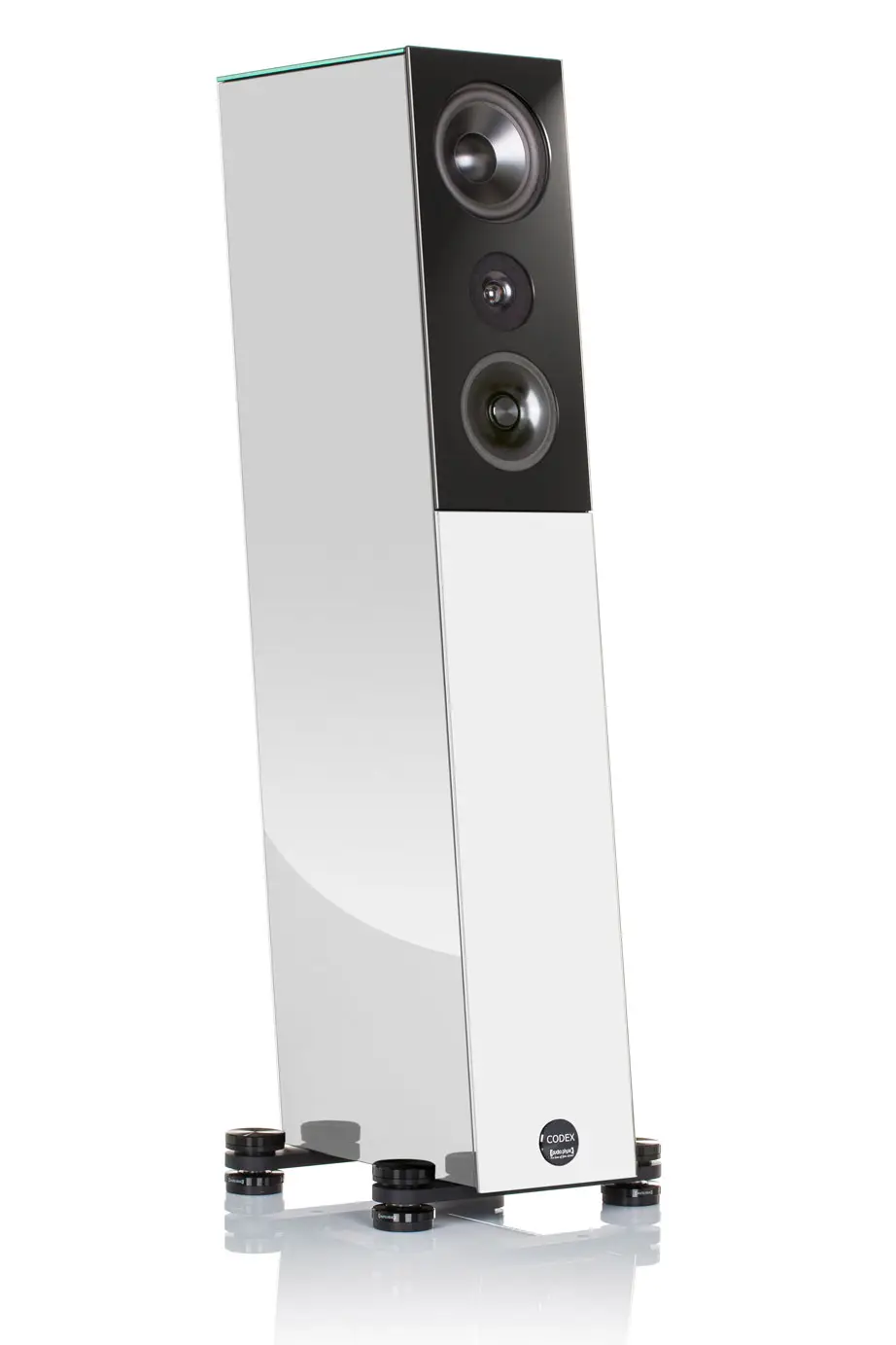 There is always a certain divergence between excellent music reproduction and interior design features. For a rich, deep bass and a solid foundation, loudspeakers require a certain cabinet volume. The Codex successfully manages this tight-rope act, thanks to its intelligent cabinet architecture and variety of available finishes. Despite its volume, the four-way loudspeaker with its clear contours and slender baffle exudes an air of stylish elegance. Especially the high-gloss glass finishes, combined with bright colour tones, almost lend the loudspeakers an appearance of weightlessness.