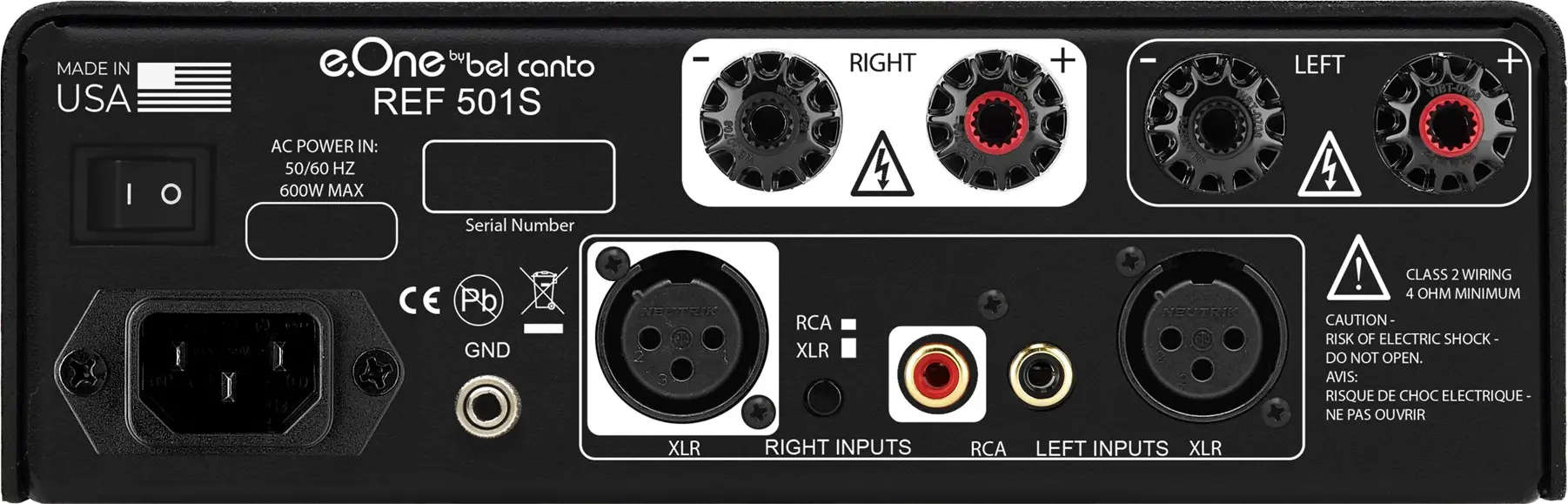 Bel Canto’s refined Class D topology brings together speed, efficiency, and precision. It produces an open, effortless sound with exceptional control over the low end. Even at lower volumes, the REF501S maintains remarkable efficiency, delivering big, room-filling sound without sacrificing refinement or tonal balance. The result is a power amplifier that sounds lively and musical, yet utterly controlled, no matter what you’re listening to.