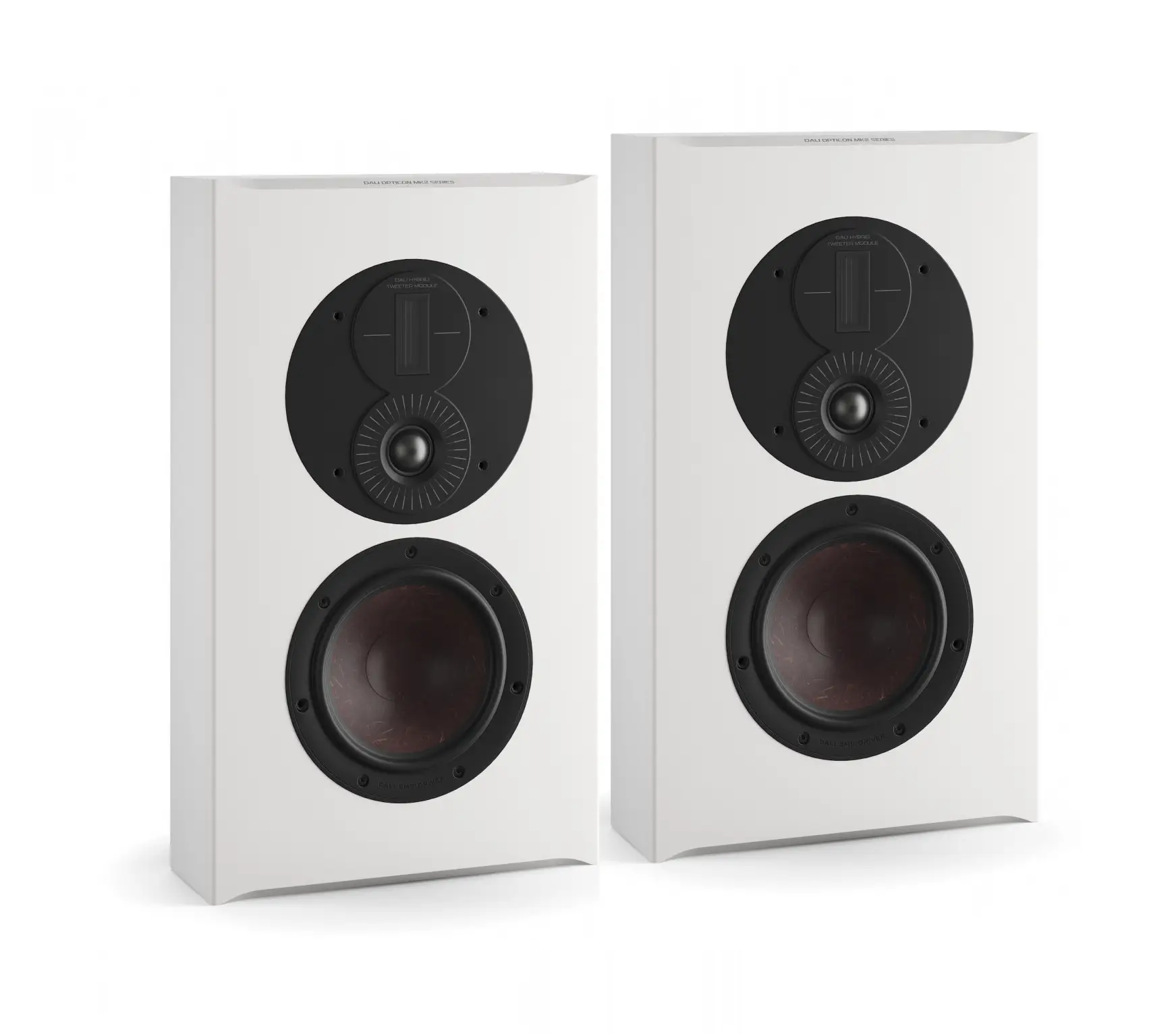 The tweeters have been upgraded to a 29mm soft dome tweeter, which has been derived from the CALLISTO series. These are used across all six OPTICON MK2 models. The new tweeter faceplates are made from cast aluminium and provide the speakers with a fantastic new DALI signature look. A custom made hybrid tweeter module is used on the OPTICON LCR MK2 On-Wall Speaker. The bass and mid-range drivers incorporate the unique DALI wood fibre diaphragms and the SMC (Soft Magnet Compound) technology derived from the flagship DALI EPICON series.