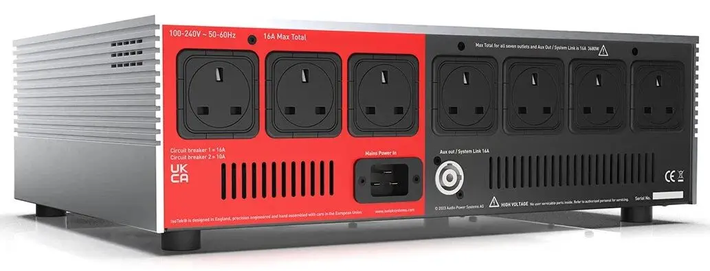 The Isotek V5 Sigmas provides four independent outlets for source components, each capable of handling a maximum of 10A of current. This accommodates various source devices such as CD players, streaming devices, and preamplifiers. Additionally, it offers three independent high-current outlets, each with a maximum capacity of 16A. These high-current outlets are versatile and suitable for power amplifiers, active subwoofers, active loudspeakers, and even TVs.