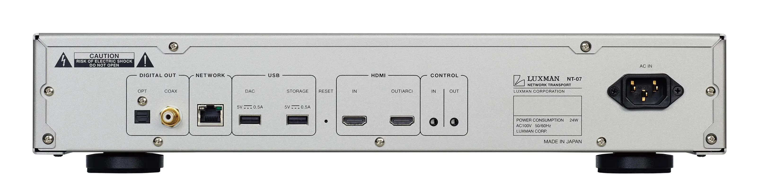 The Luxman NT07 creates an optimized network audio environment by working seamlessly with D/A converters equipped with USB, optical, or coaxial digital inputs. Its core sound source options include NAS (Network Attached Storage) compliant with the OpenHome platform, external USB storage, and a wide array of popular streaming services. Powered by high-speed application processor modules, the NT07 ensures effortless handling of complex audio processes while maintaining impeccable operational ease.