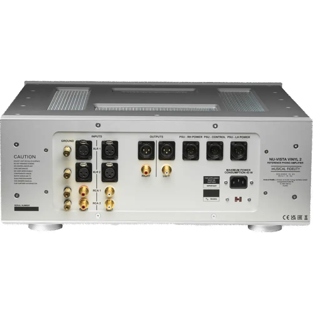 The Musical Fidelity Nu Vista Vinyl Phono Stage is a versatile audio component designed to enhance the vinyl listening experience with its well-engineered features. The device offers a range of gain options at its XLR outputs, providing users with settings of 40dB, 43dB, 46dB, and 49dB. This flexibility allows for precise adjustment based on the specific characteristics of different vinyl recordings. The frequency response is finely tuned, maintaining a balance with a deviation of +0.2dB to -0.2dB, ensuring an accurate and faithful reproduction of the original audio.