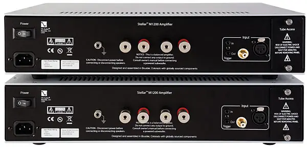PS Audio Stellar M1200 mono power amplifiers provide an unmatched level of control, dynamics, and power. They are rated at 600 watts into 8 ohms and 1200 watts into 4 ohms. The Class-A vacuum input stage delivers uncompromised musicality and sonic character with zero feedback.