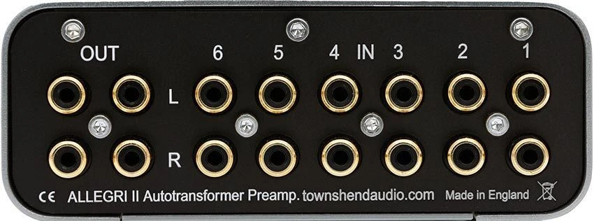 The Townshend Allegri + Passive Pre Amplifier has six pairs of gold plated stereo phono inputs and two pairs of outputs. the Allegri Pre is housed in a sleek anodized aluminium case.